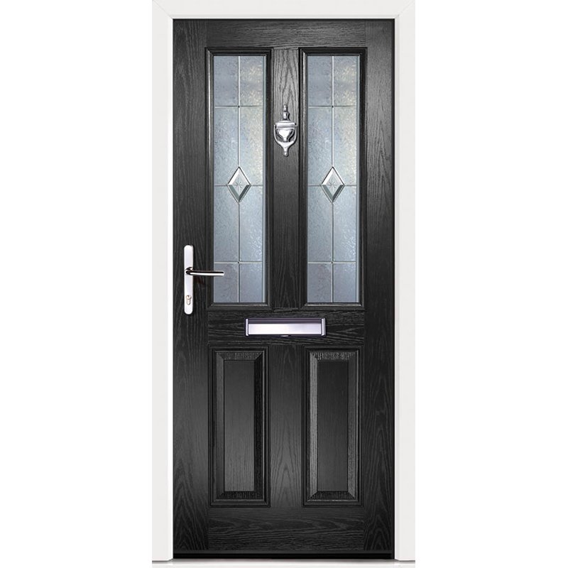Features & Benefits: Virtuoso Clifton CS4 Left Handed 2 Panel Victorian Fully Finished Black Composite 2 Light Decorative Glazed External Front Door - 2100mm x 845mm (82.7x33.3 inch)