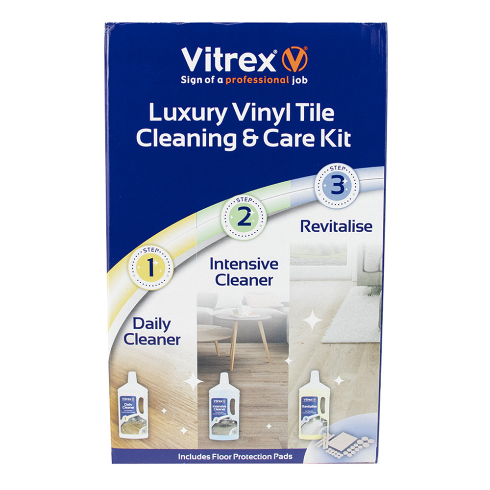The Vitrex Luxury Vinyl Tile (LVT) Three Step Maintenance Kit contains the three essential products you will need to clean and protect your floor while maintaining its appearance for years to come.