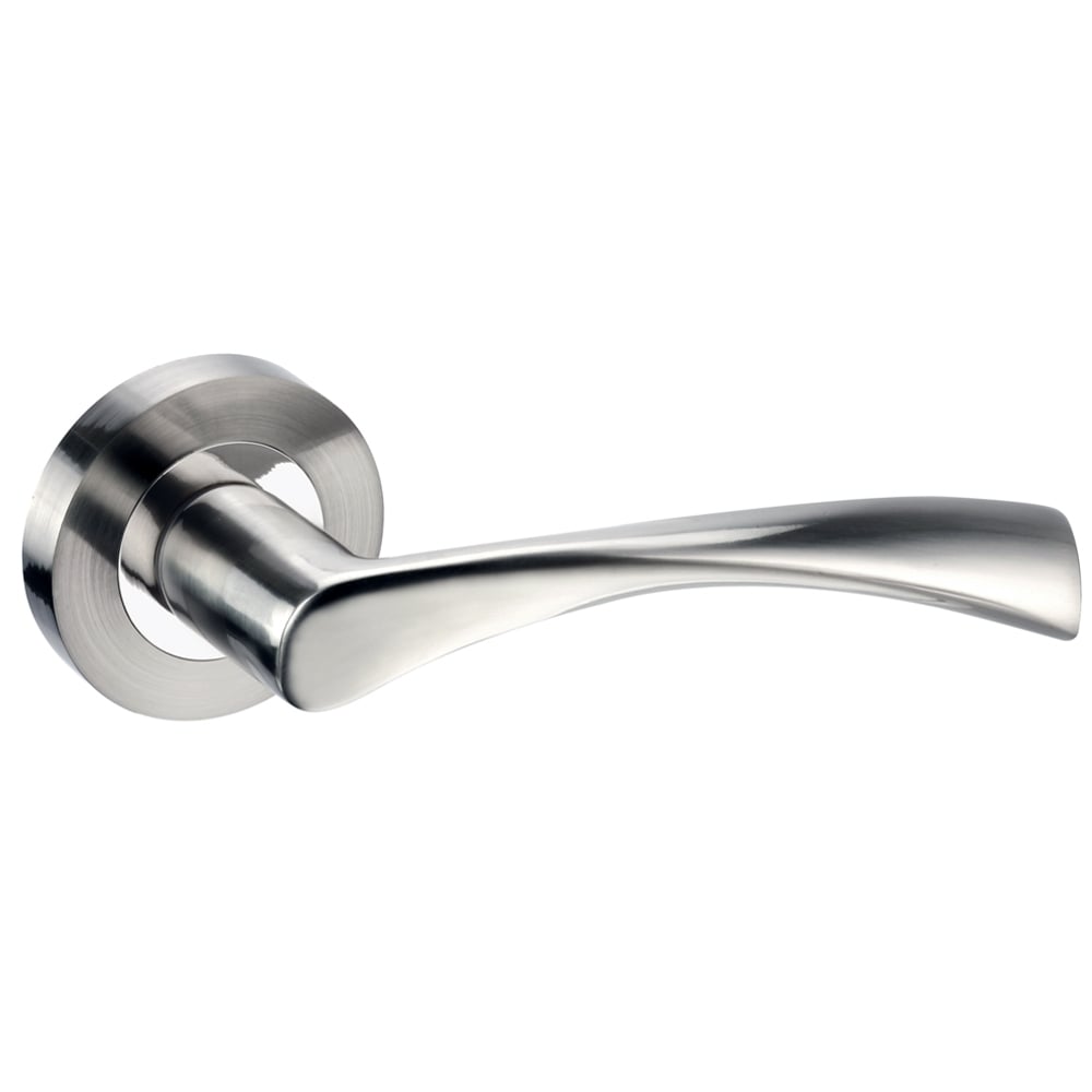 These door handle pairs add a stylish and contemporary touch to your home, they are finished in a duo aluminium (mixed polished and satin chrome)giving a twotone effect with a stunning twist detail through the body of the handle.