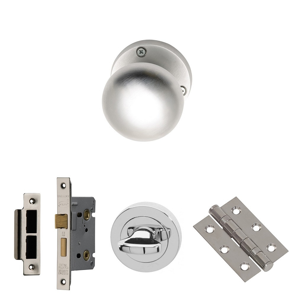 XL Joinery Elbe Satin Chrome Bathroom Lock Door Handle Pack