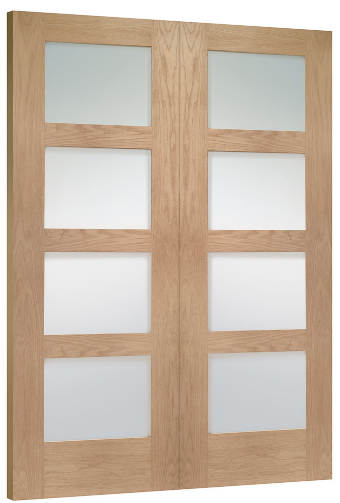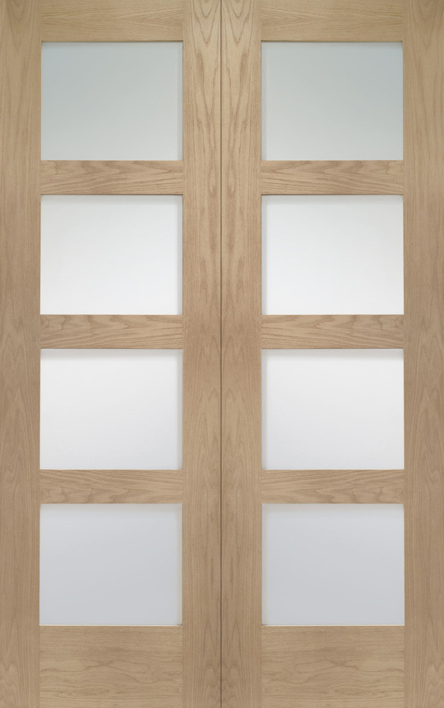 The simple elegance of this minimalist Shaker design is enhanced by the oak veneers. Oak is incredibly popular, prized for its neutral and modest grain's ability to sit alongside just about any colour scheme. It's also great with other wood features and floorings. These doors come unfinished, awaiting the topcoat of your choice, whether it's wax, stain or paint. Engineered to be as robust as possible with reinforced safety glass, these doors will hang firm in your home for many years to come.