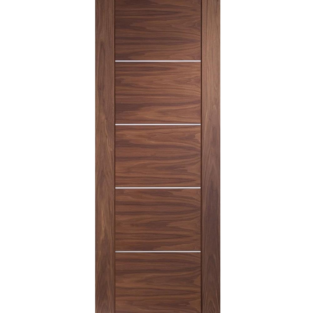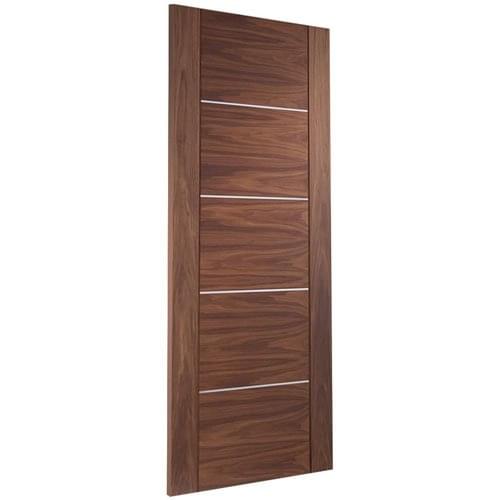 With real aluminium inlays and striking horizontal grain, the Portici range adds a subtle touch of class to any home. This walnut door is delivered fully finished. The contemporary style of this door makes it a perfect choice for on-trend interiors.