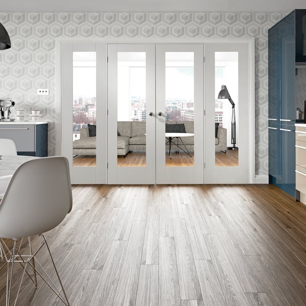 With a timeless, simplistic design, the Pattern 10 door range from XL Joinery is the perfect flexible choice to enhance the look of any home. This clear glazed white door is delivered primed. The contemporary style of this door makes it a perfect choice for on-trend interiors.... Read More