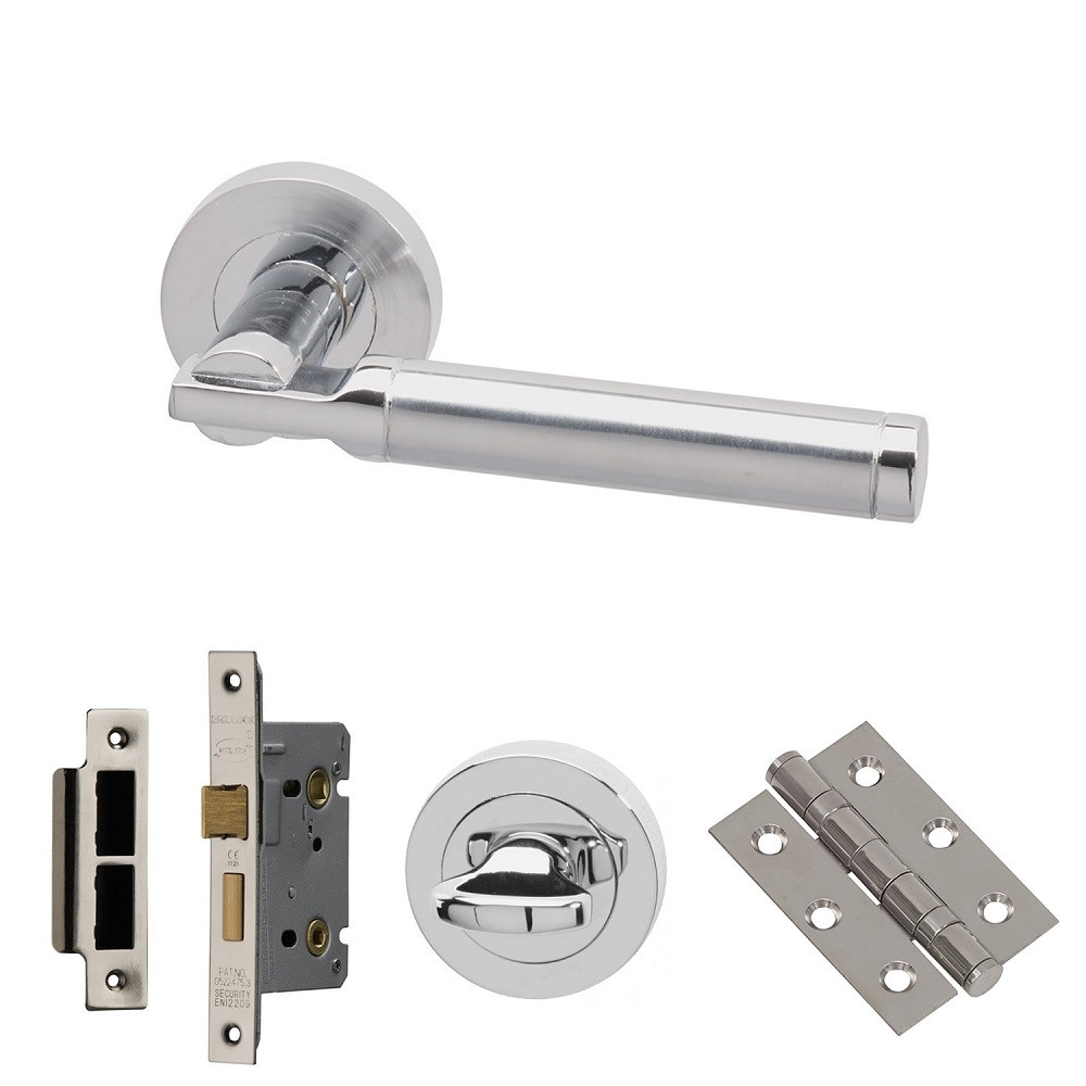 DISCON - XL Joinery Tiber Polished/Satin Chrome Bathroom Lock Door Handle Pack