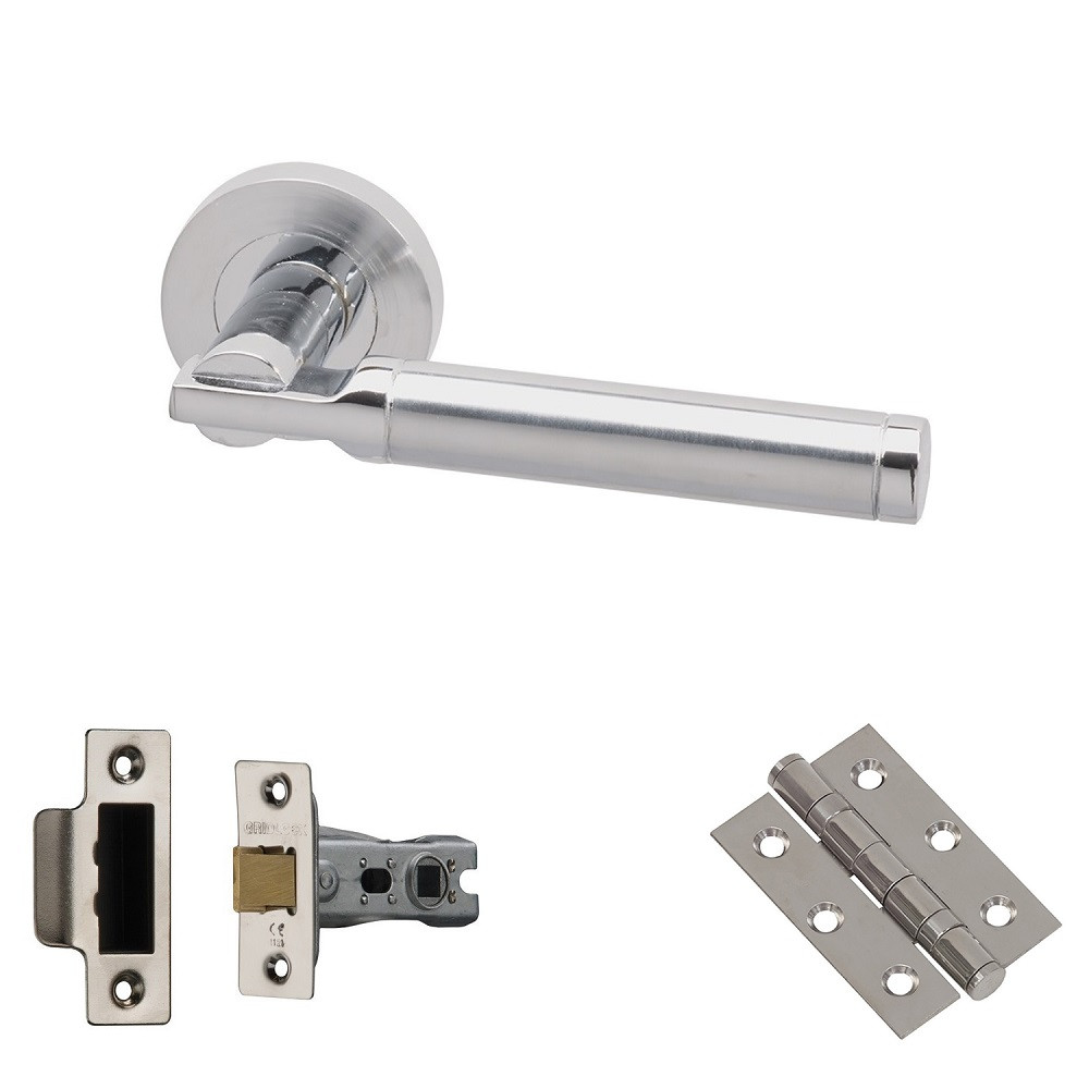 DISCON - XL Joinery Tiber Polished/Satin Chrome Latch Door Handle Pack - 65mm