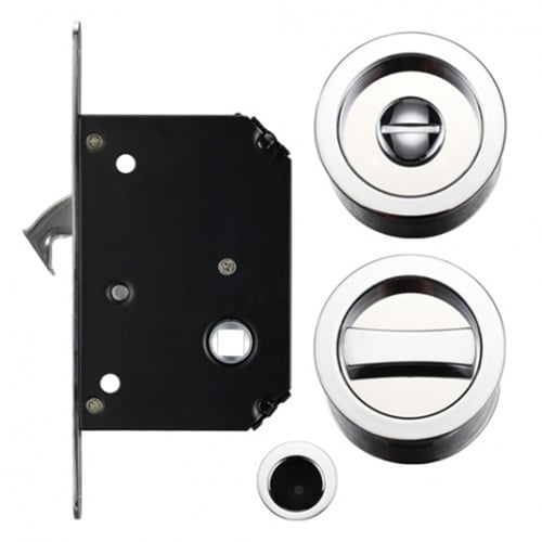 MATERIAL: BrassTYPE: Bathroom lock and sliding door kitSTYLE: Modern and flush design FINISH: Available in a polished chrome, polished brass, satin chrome and satin nickelFIXINGS: All required fixings includedDescription  COMPLETE KIT INCLUDES:  1... Read More
